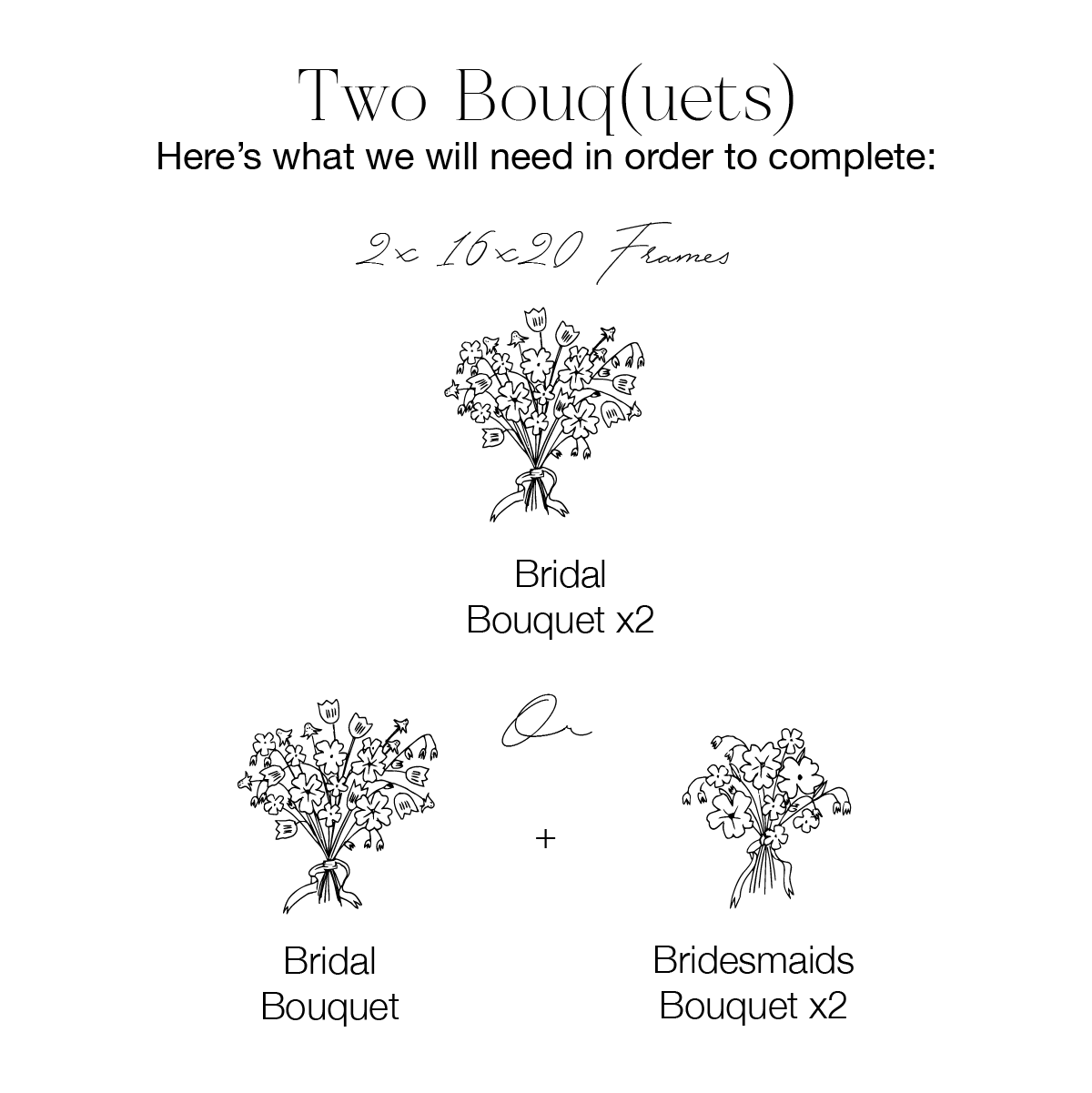 Capture the beauty of your floral arrangements for years to come with Two Bouquets. This 16x20” frame pair is ideal for Mrs. & Mrs. couples, preserving your centerpieces, or gifting a statement piece to a loved one.