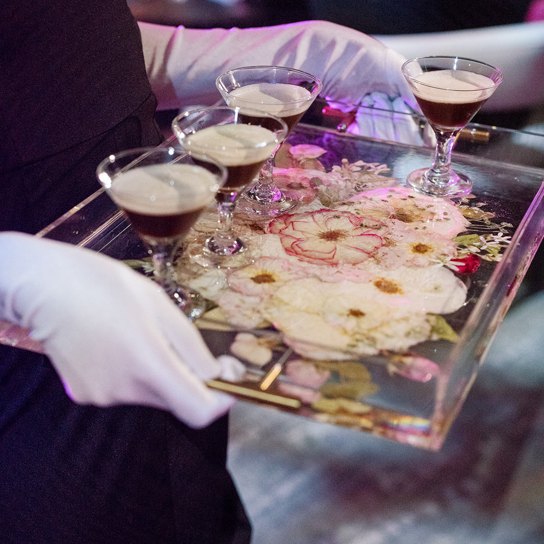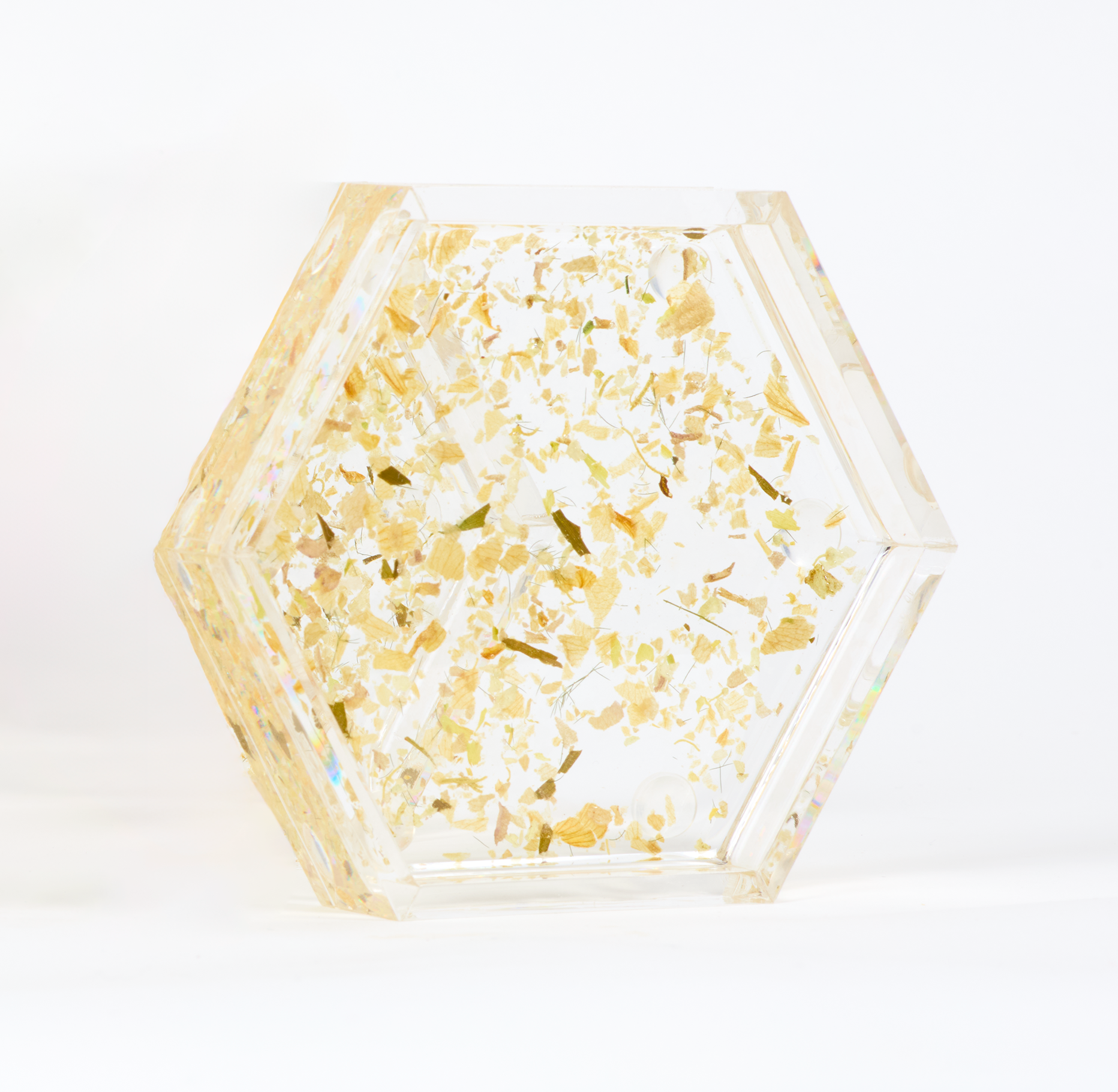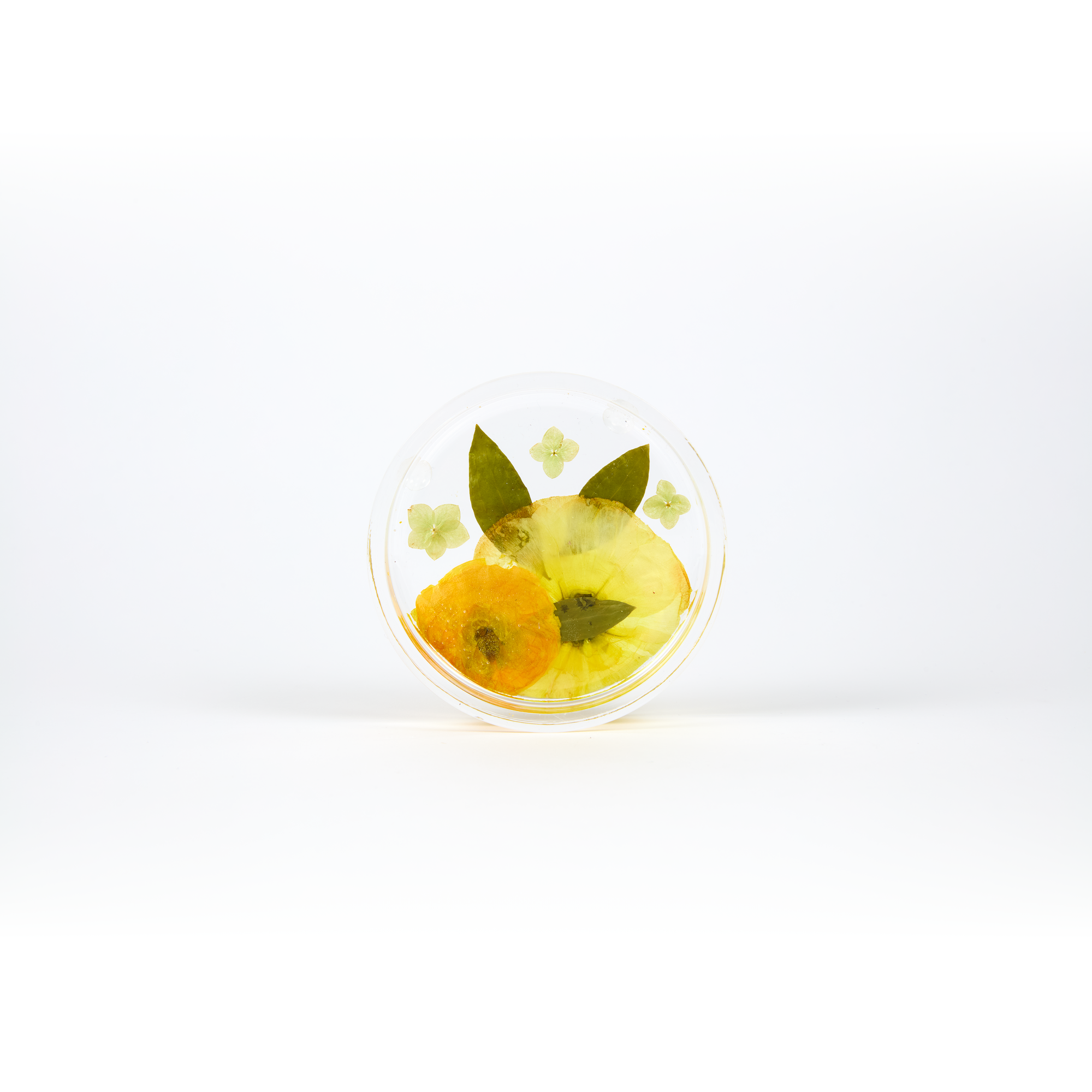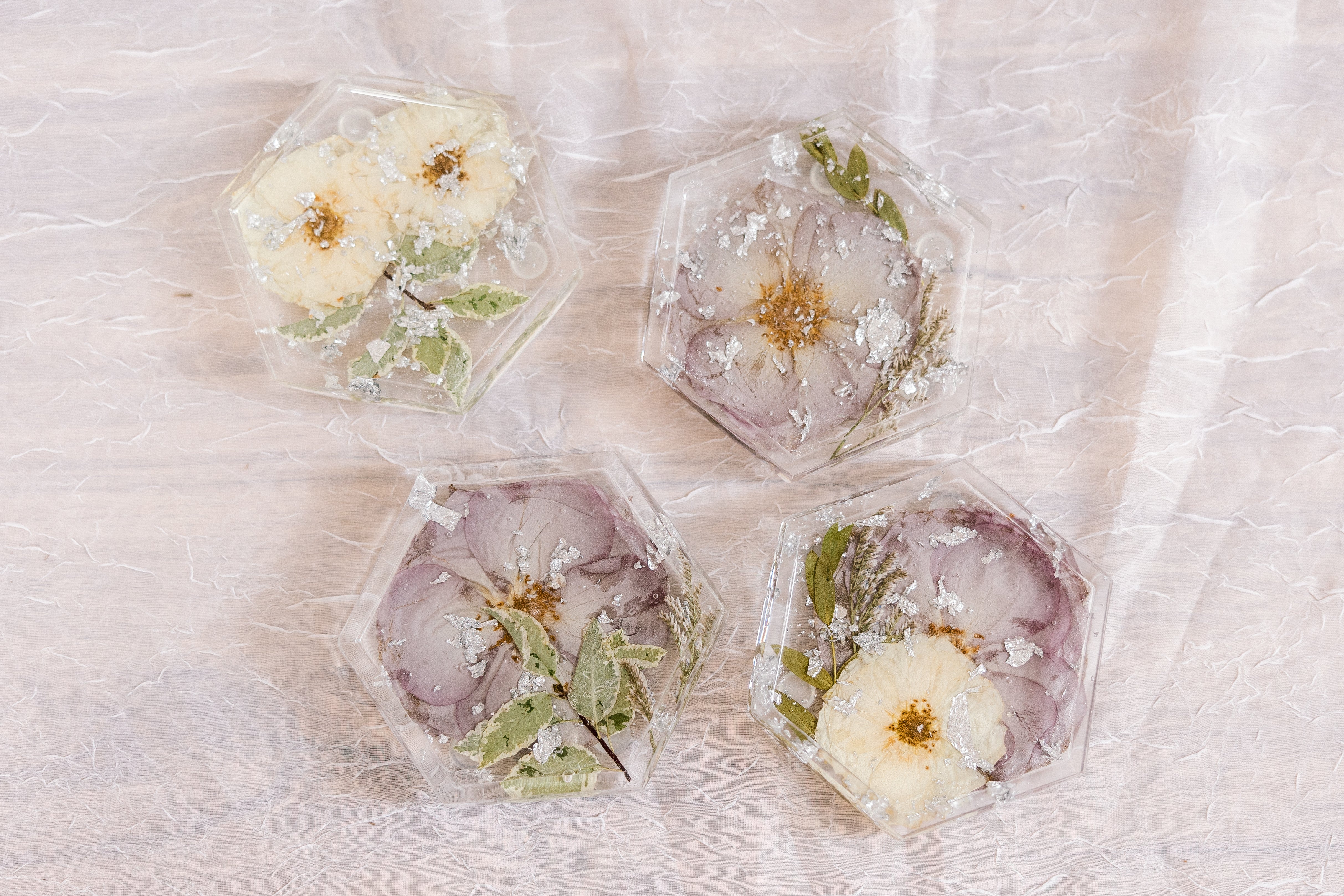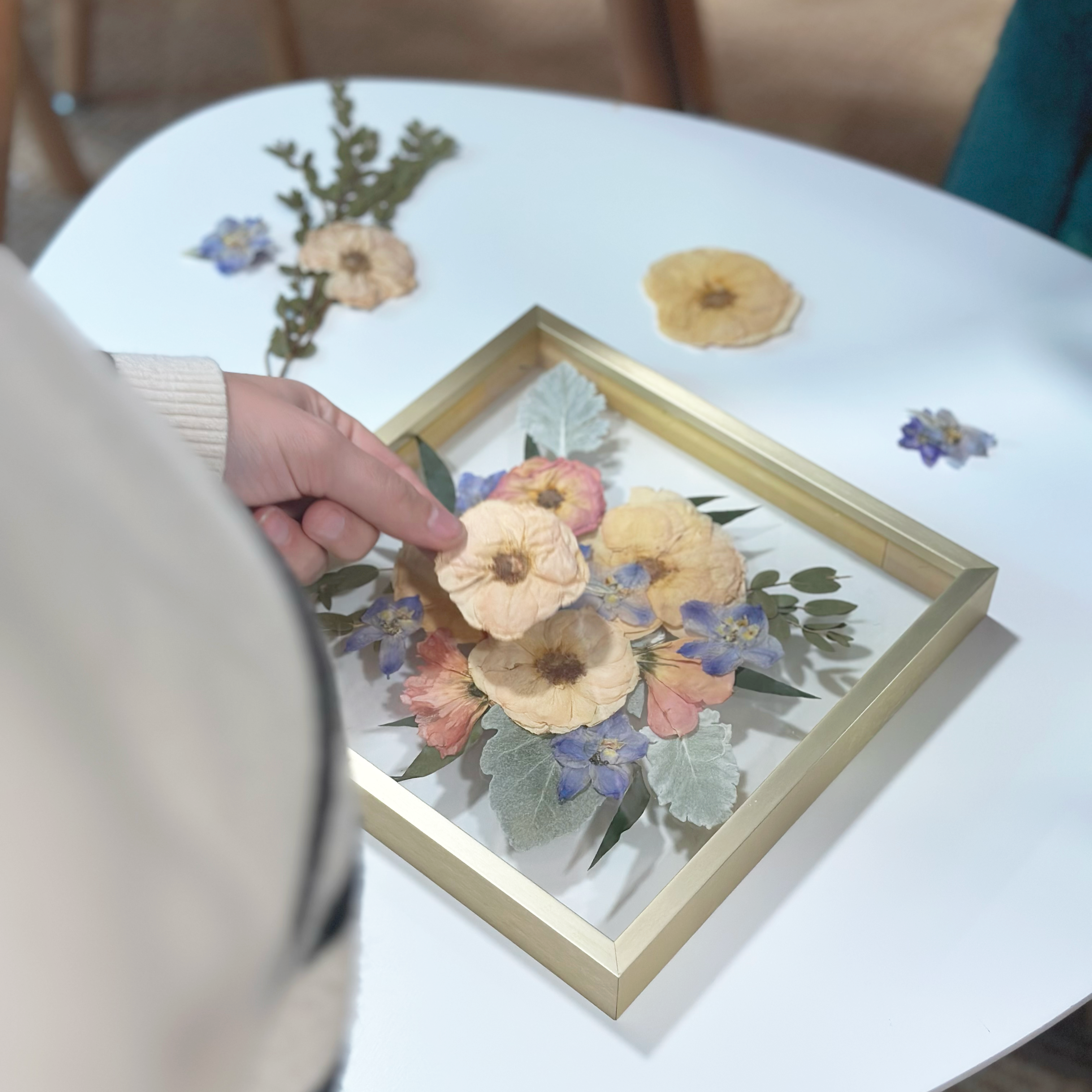 It's important to keep in mind that fresh flowers will change once pressed. They transition from a vibrant, three-dimensional bloom to a flat, one-dimensional form, which is then used to recreate your fresh arrangement into either framed artwork or a functional resin piece.