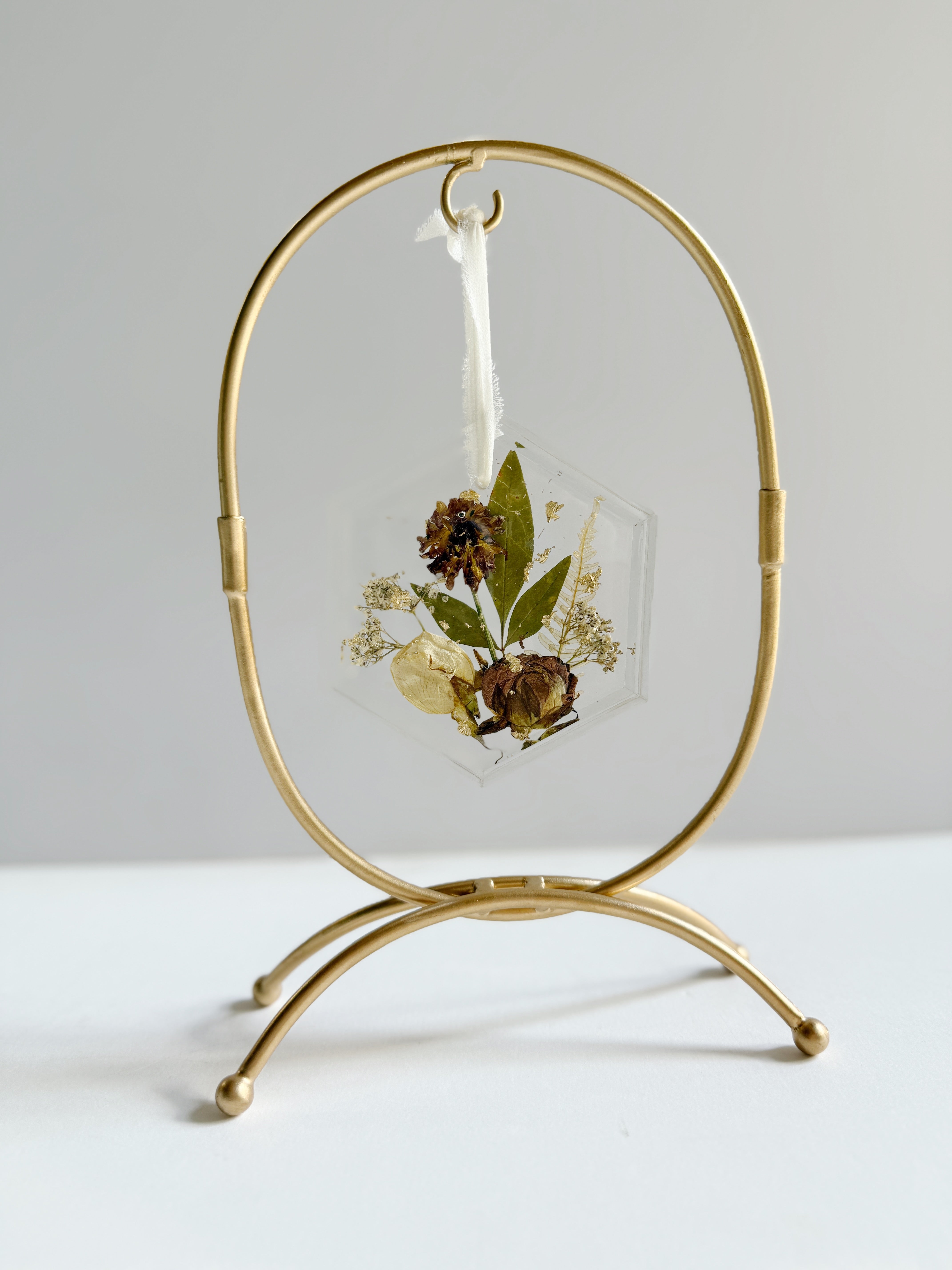 - Sold individually, pressed flower ornament sold separately