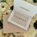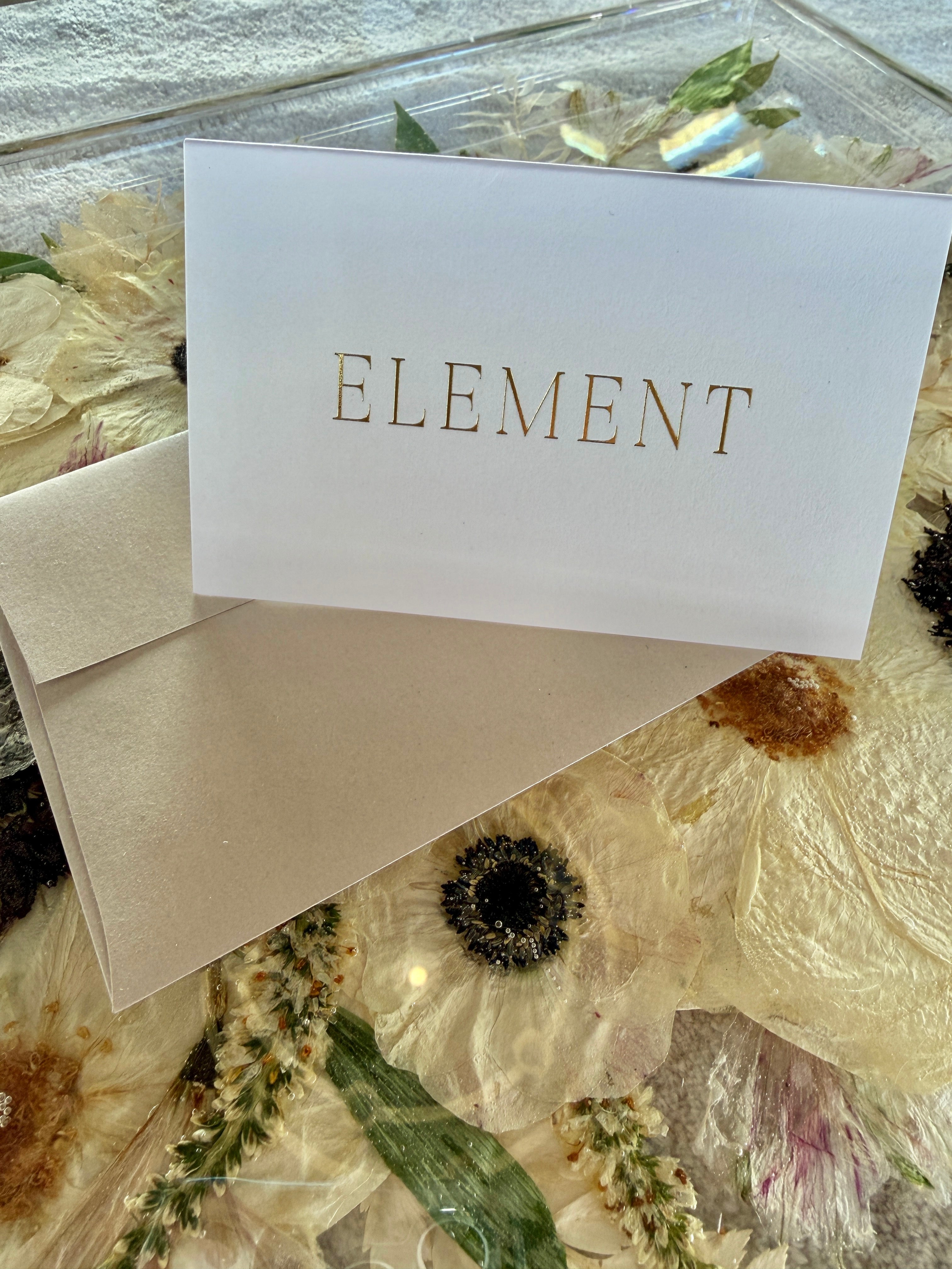 If you would like the Element Team to fill out the "To" and "From" section on the gift card, specify these credentials in the order notes section when checking out. If not, those sections will be left blank intentionally.