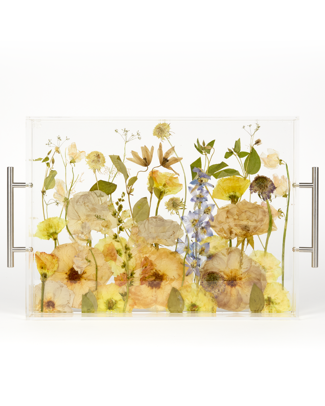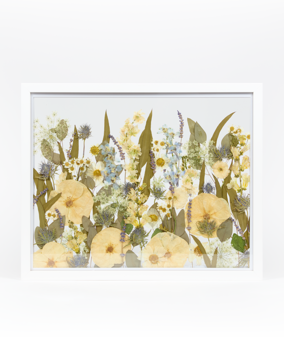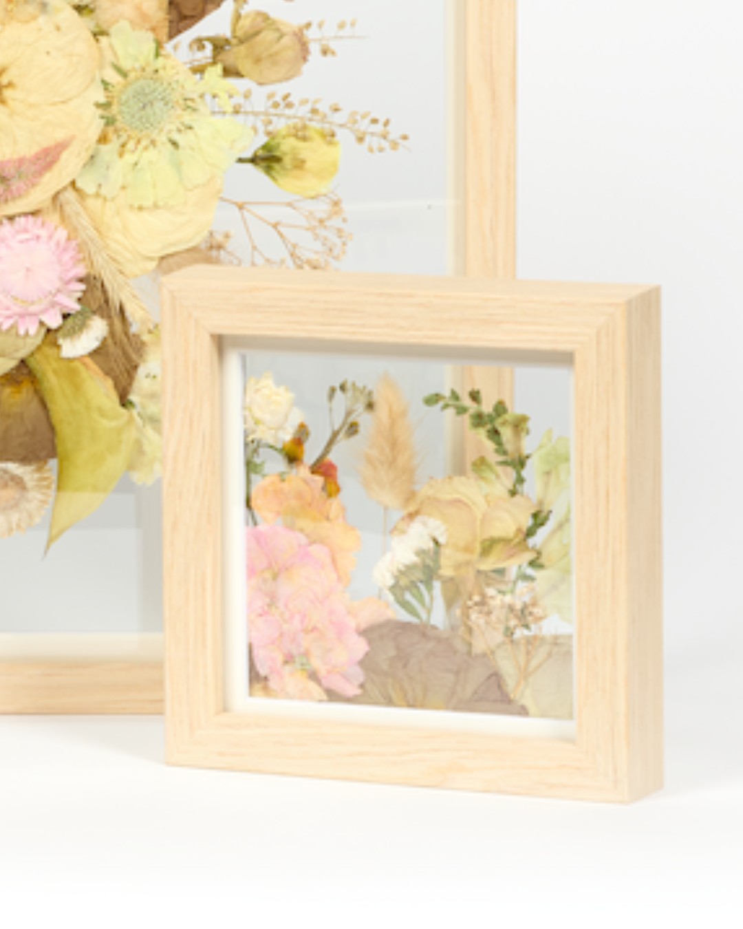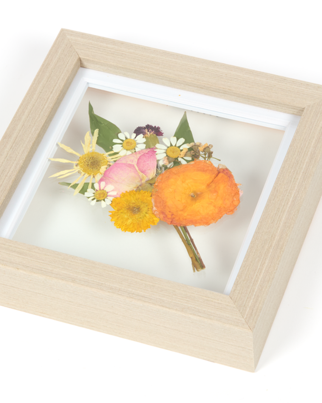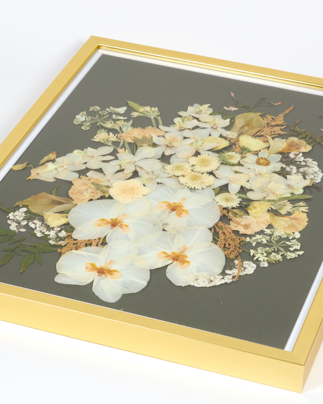 Taking an organic medium from a hydrated 3-dimensional shape to a dry 1-dimensional layer will result in change. From shape, to texture, and color- each bouquet presses differently. Some of the biggest changes you will notice are in the colors of the blooms themselves.