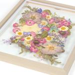 In our pressed bouquet pieces, we’re committed to preserving each flower’s natural beauty without using artificial enhancements or dyes. Every petal and leaf holds a unique story, from the original hues to the subtle shifts that happen over time, showcasing the organic charm of each bloom.