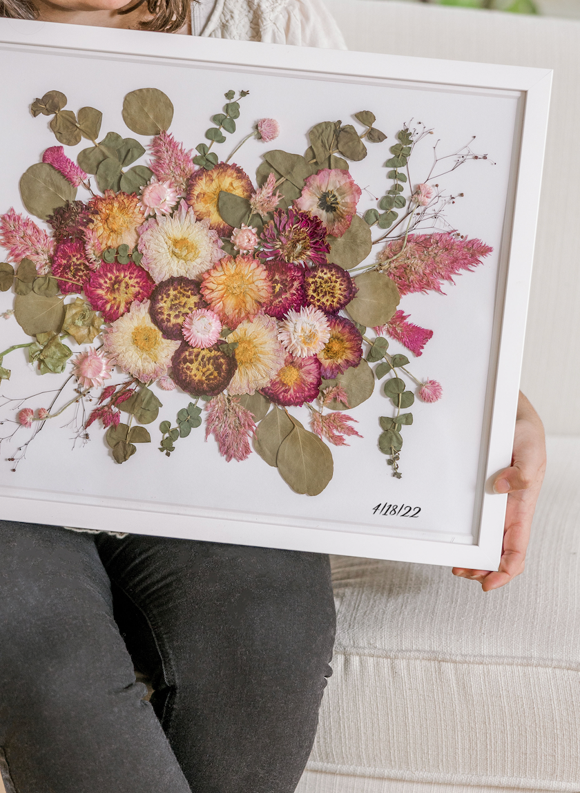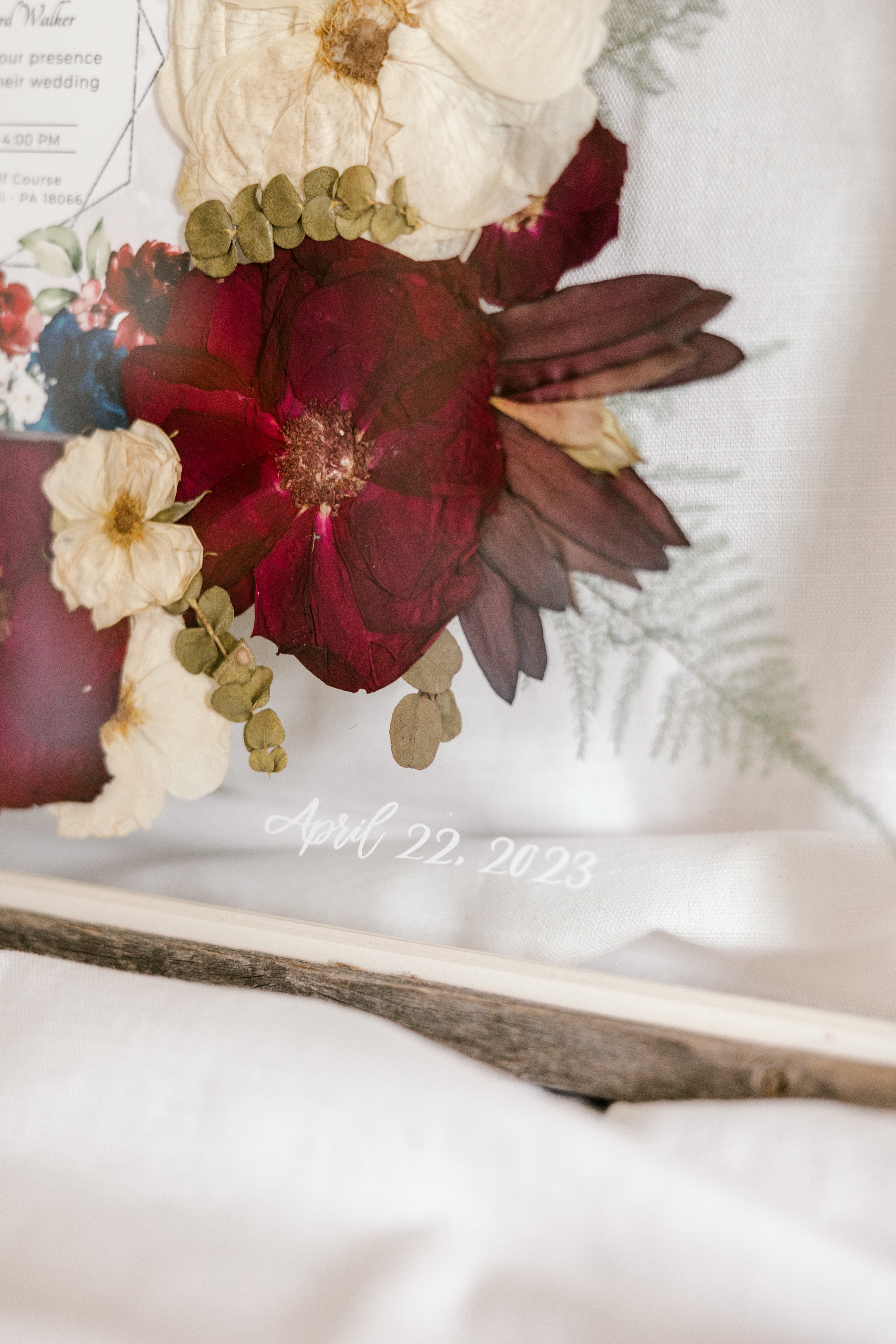 The vinyl date adds a subtle and personal touch to your already gorgeous pressed flower frame.